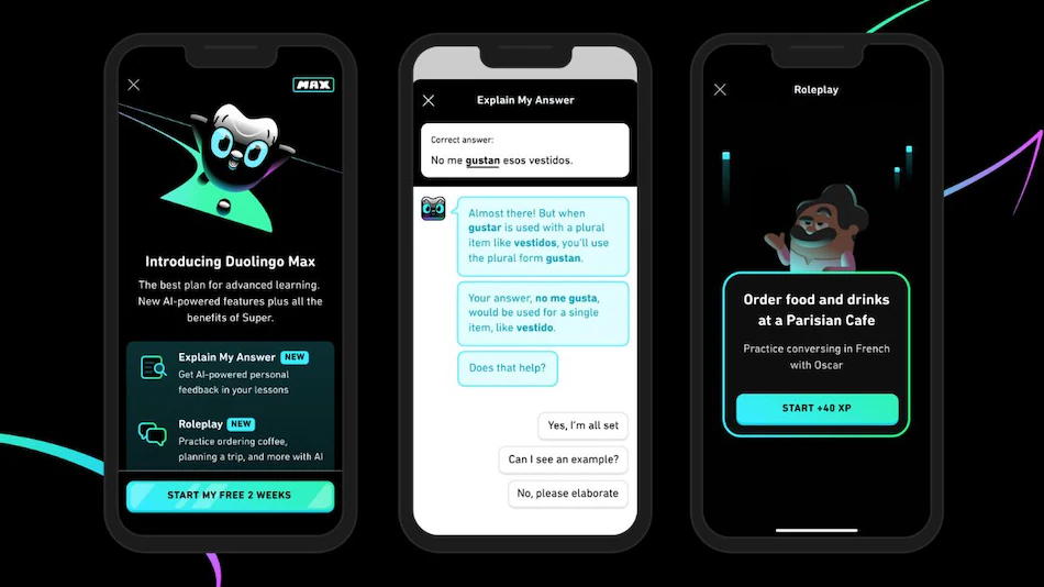 The most popular language learning app in the world now features AI chats as a supplement to their traditional lesson format. The primary purpose is to provide an open canvas for users to ask questions and practice the prior lesson. The The experience is entirely text-based, but given the company’s history of innovation, we expect to see more a immersive in the future. AI chatting feature is included in Duolingo’s Max membership, which is the most expensive of their premium offerings.